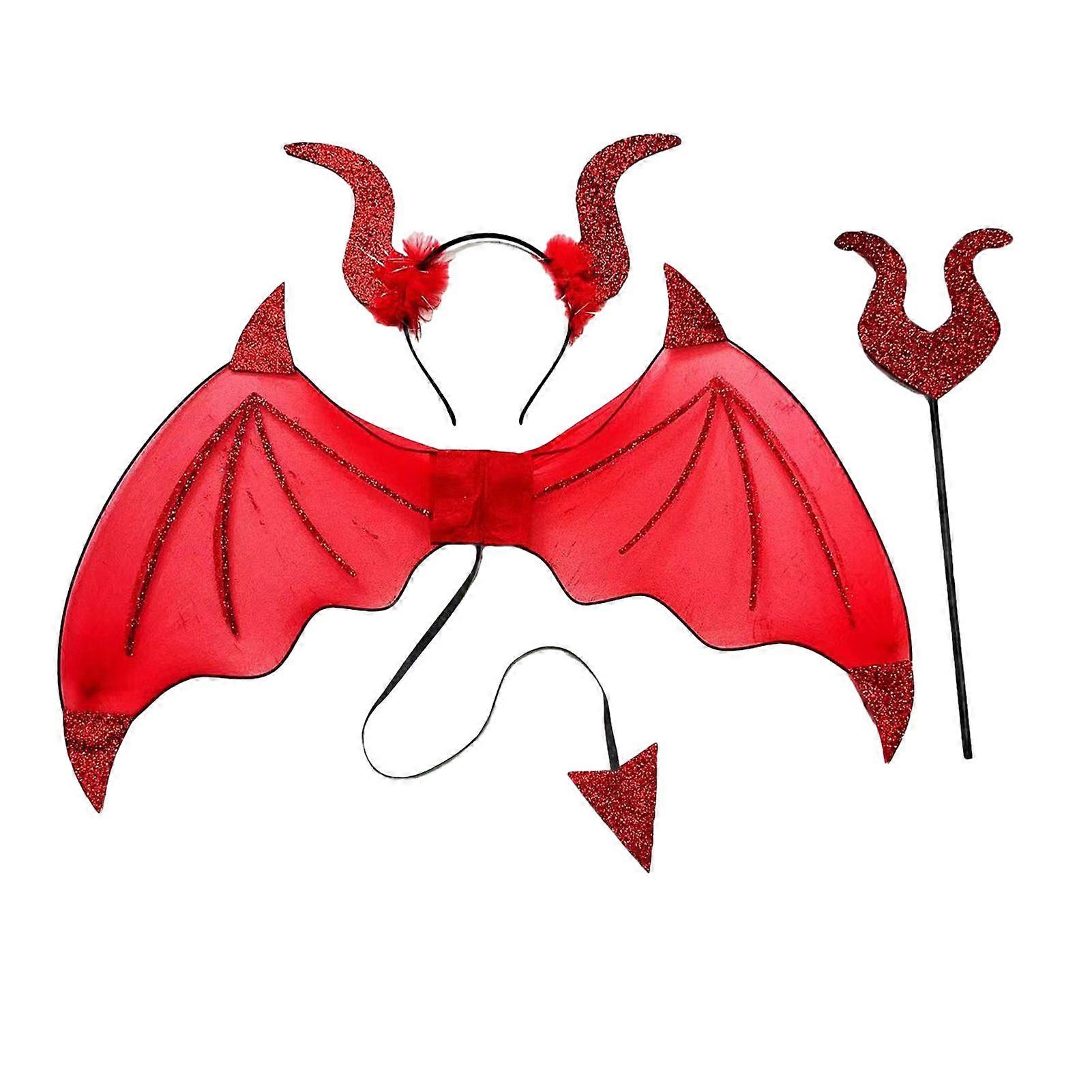 3Pcs/Set Devil Wings Hair Hoop Set Trident Fork Demon Role Play Headband Set Halloween Costume Accessories