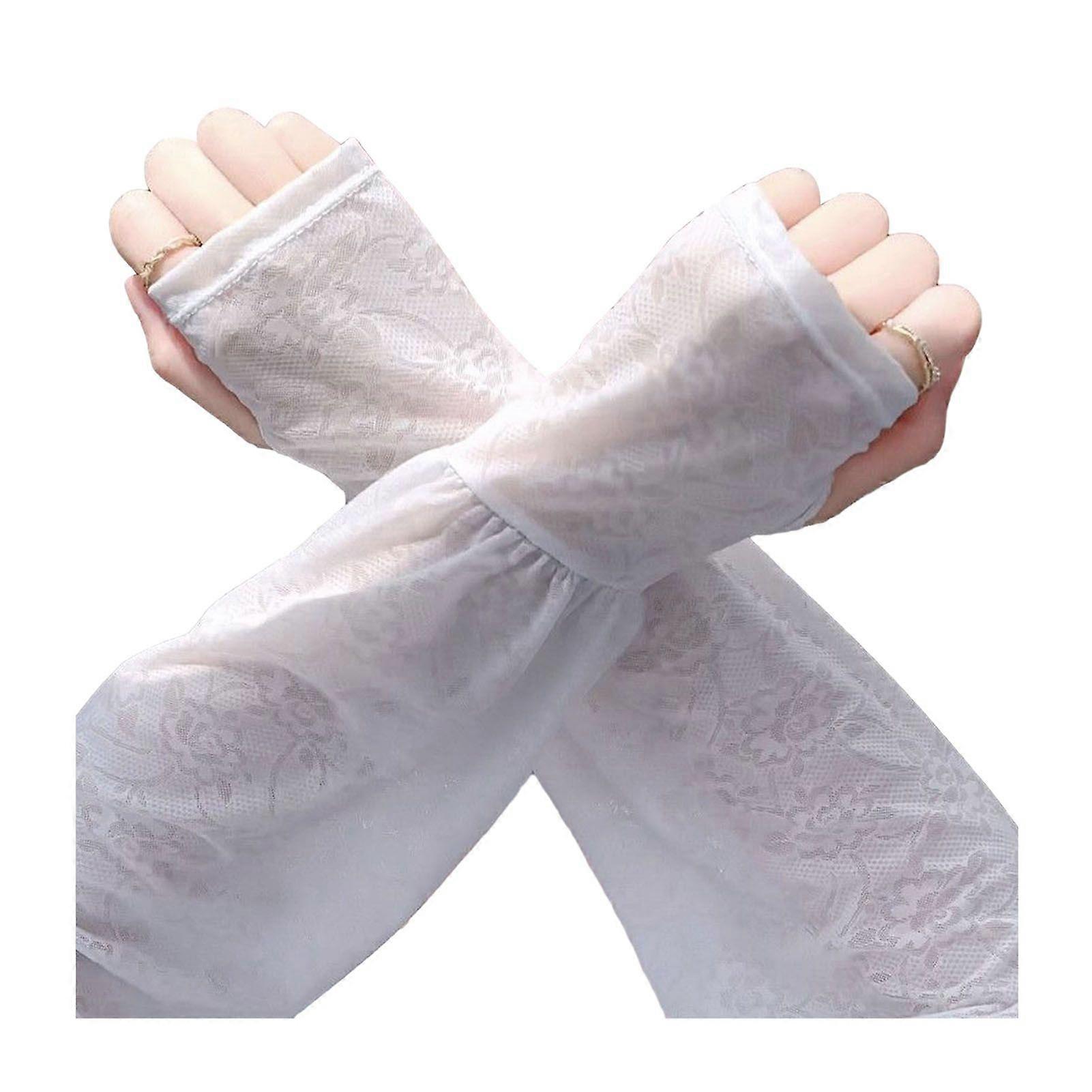 Summer Lace Arm Sleeves for Women UV Sun Protection Fingerless Long Gloves Floral Lace Sunscreen Sleeve for Driving Cycling
