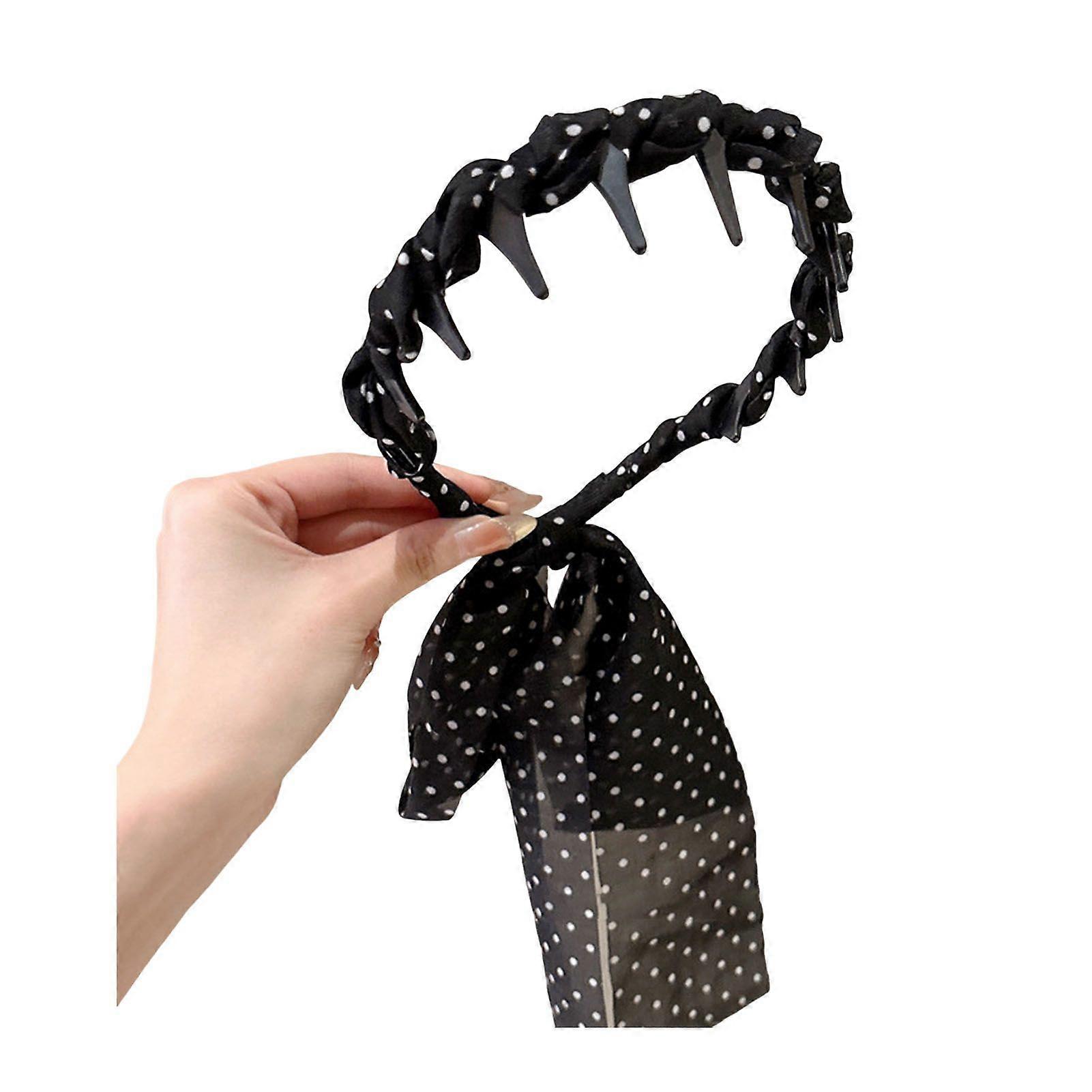 Women Headband Anti-slip Teeth Skull Design Hair Hoop with Ribbon Decor Slimming Effect Headband Hair Accessory
