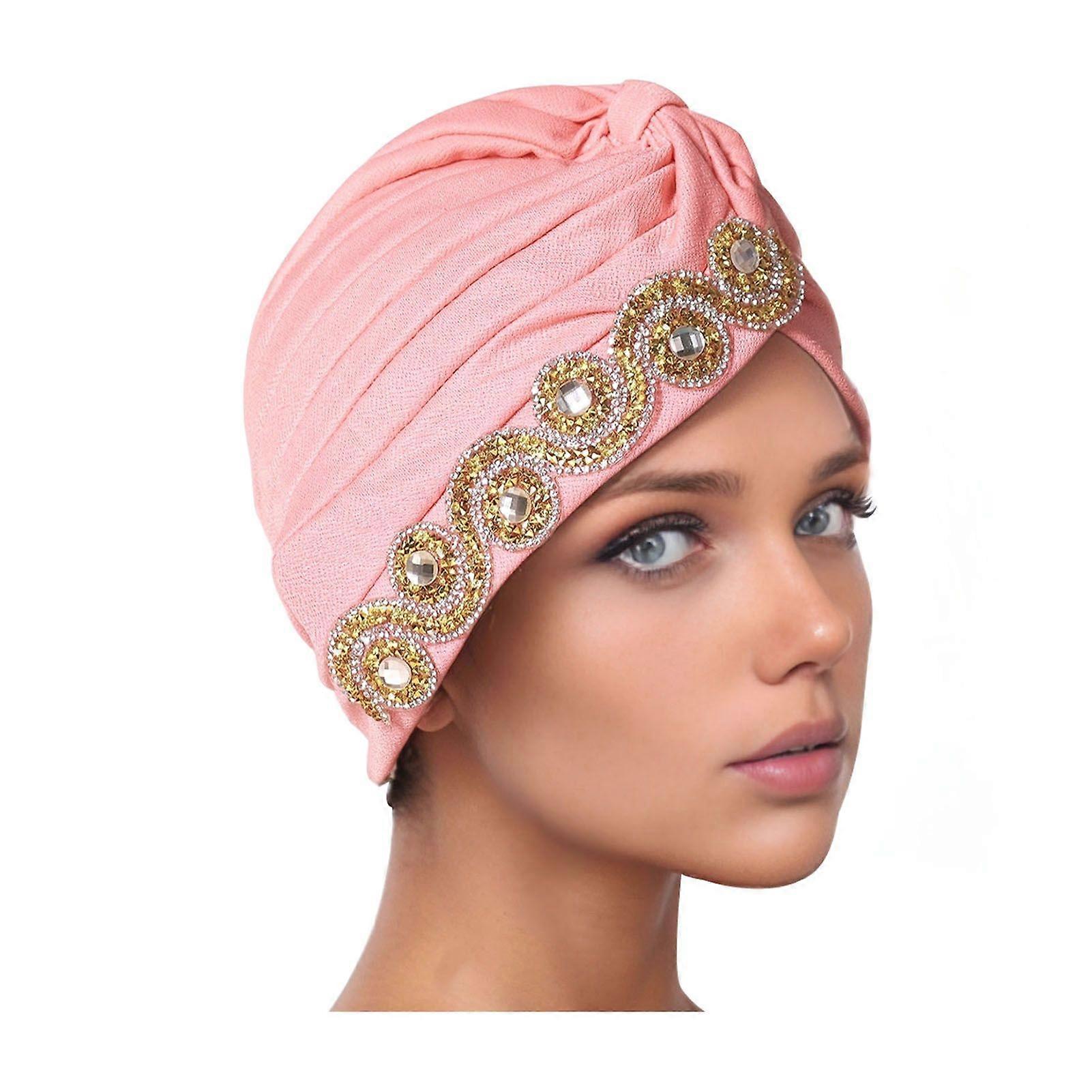 Women Headscarf Elastic Head Circumference Twisted Design Turban Hat with Rhinestones Decor Hair Accessories