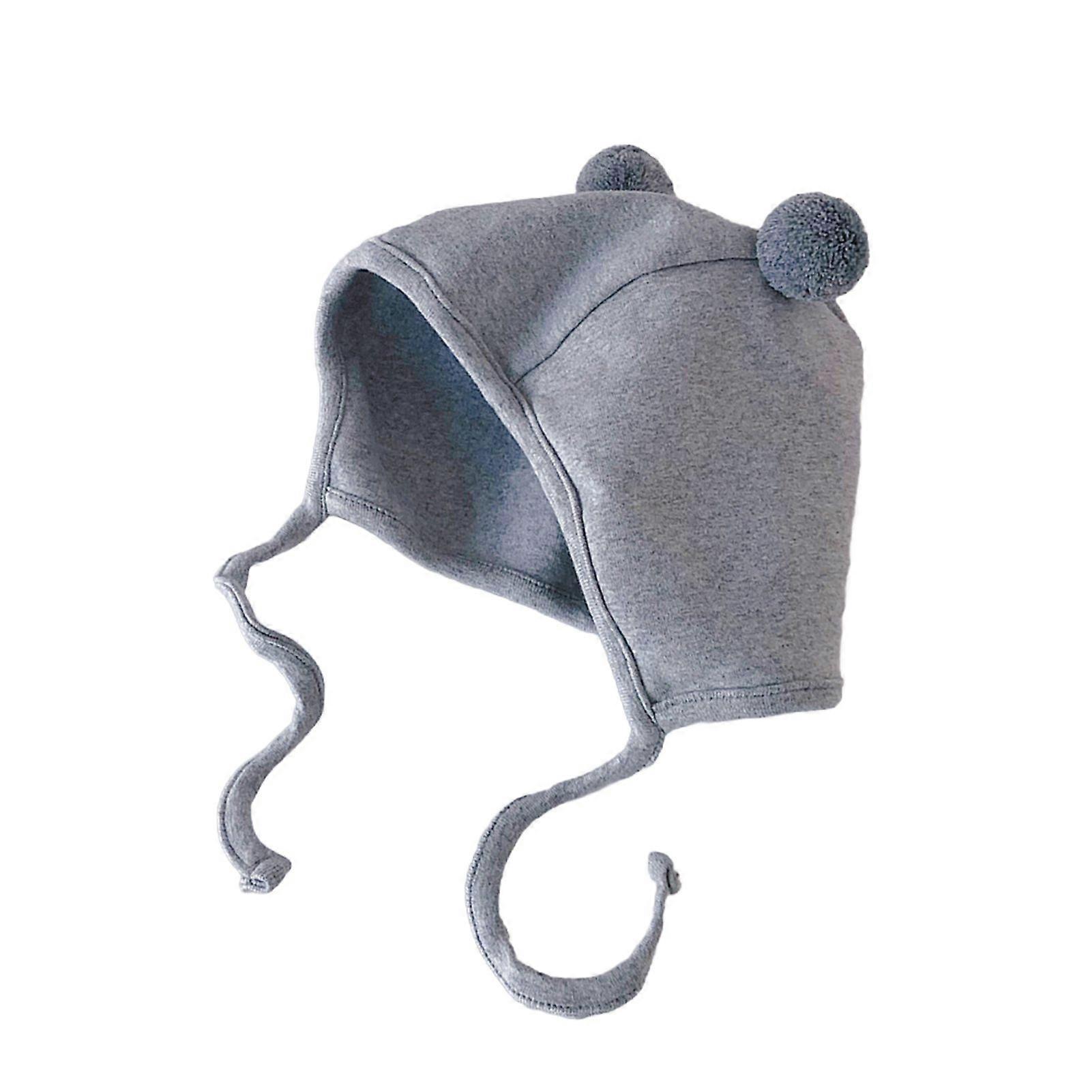 Soft Baby Hat with Double Ball Design Solid Color Warm Breathable Chin Tie Lightweight Infant Hat Headwear