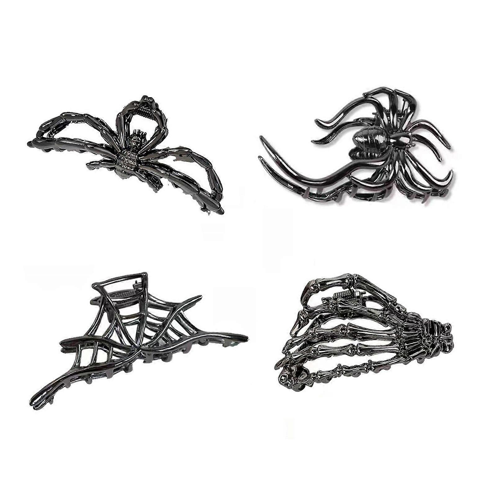 4Pcs Halloween Hair Claws Black Spider Web Skeleton Hand Bat Shape Hair Clips Anti-slip Teeth Back Head Shark Hair Clips