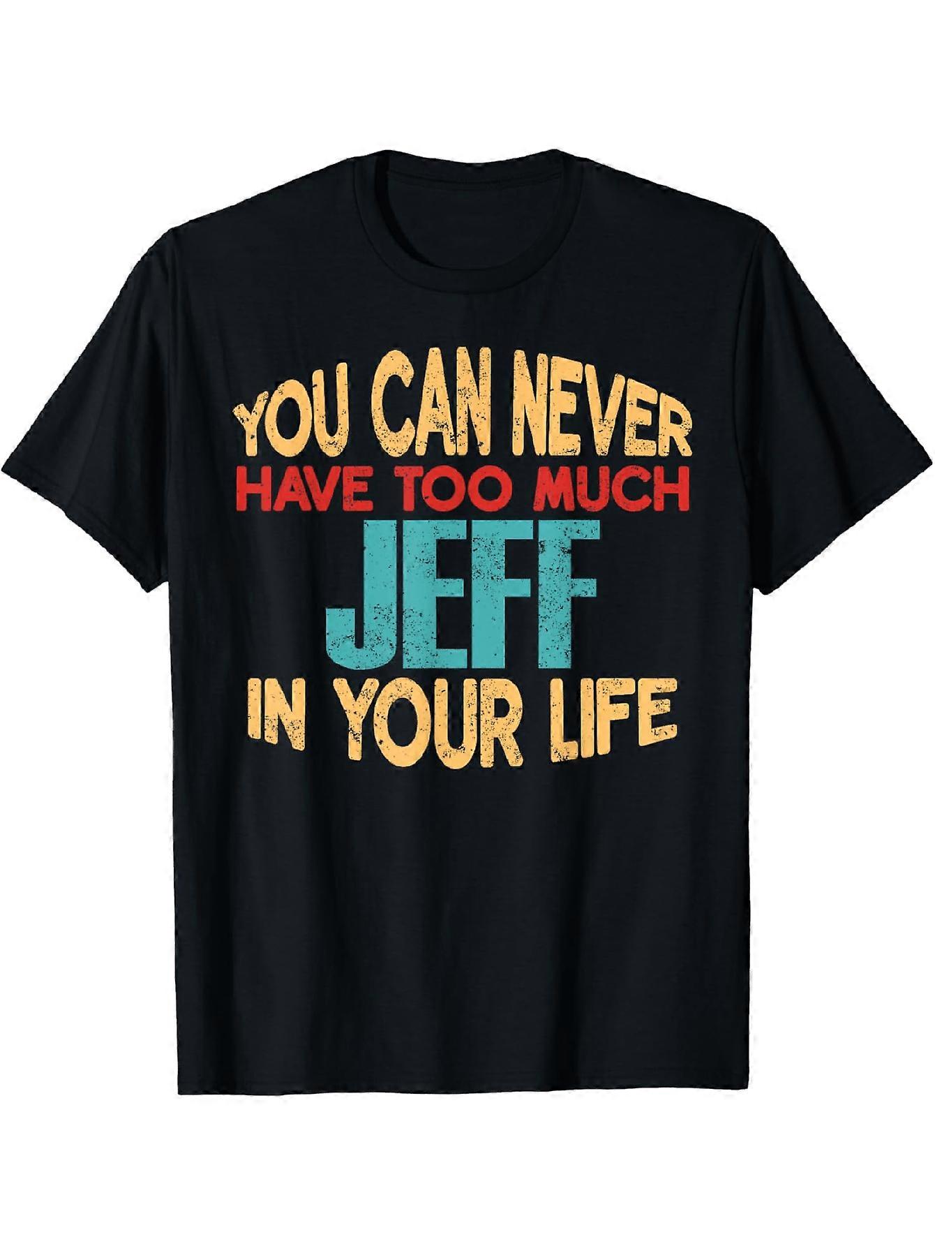 Comfort Jeff Men's "You Can Never Have Too Much Jeff" Graphic T-Shirt - Black Cotton Crew Neck Casual Tee with Colorful -Acder