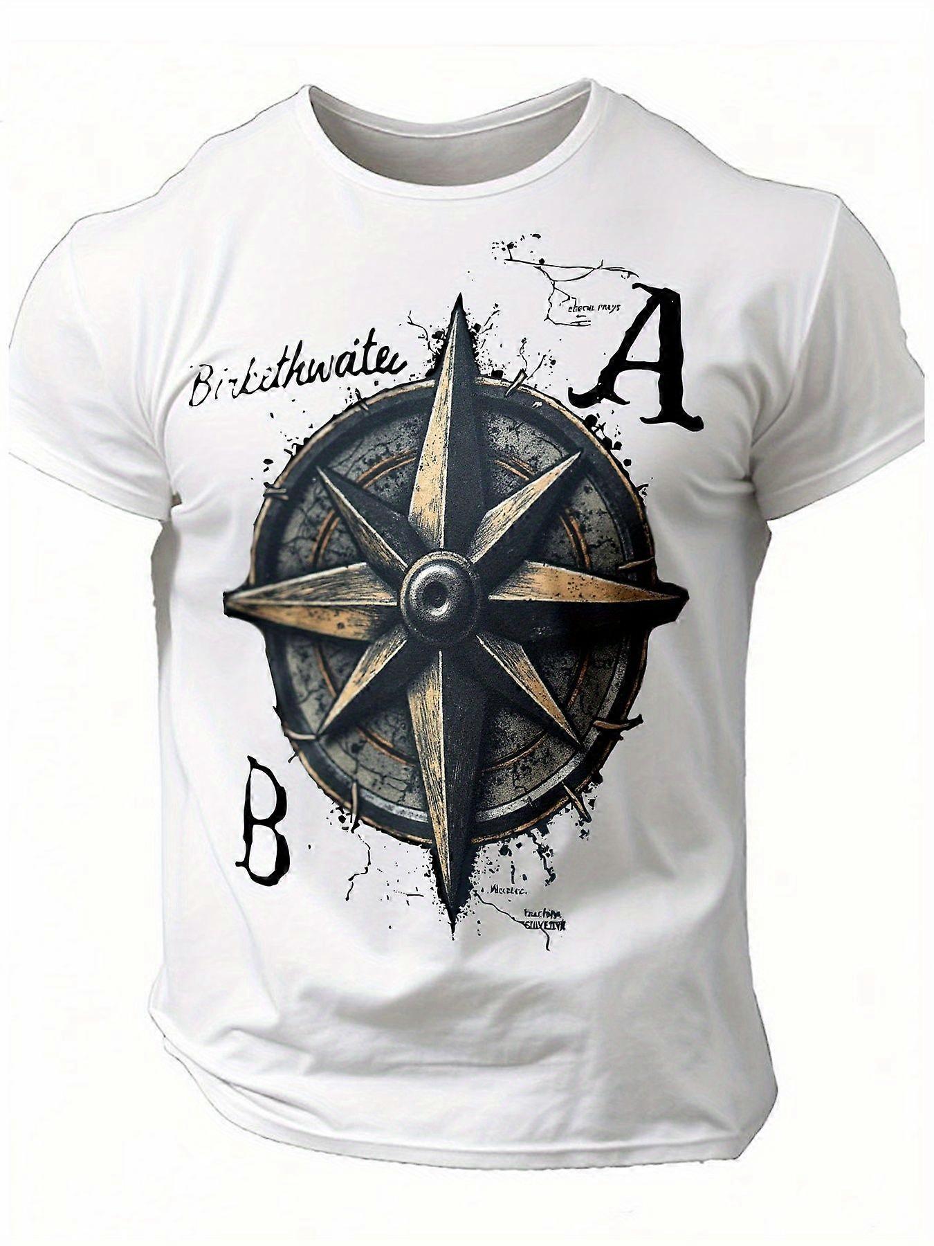 Men's Vintage Compass Rose T-Shirt - Black & Golden Navigation Graphic Tee, Breathable Cotton Shirt for Travel, Hiking, -Acder