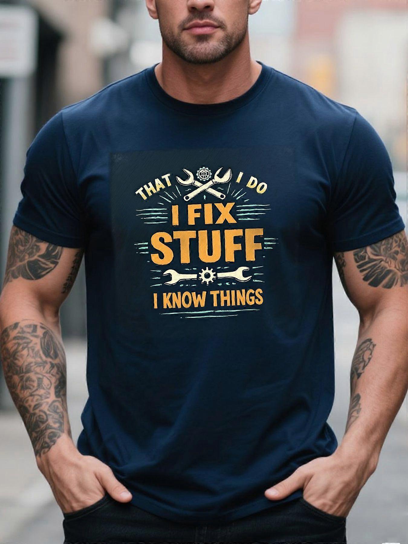 That I Do I Fix Stuff I Know Things Funny Mechanic Graphic T-Shirt for Men - Casual Crew Neck Short Sleeve Cotton Blend -Akgds
