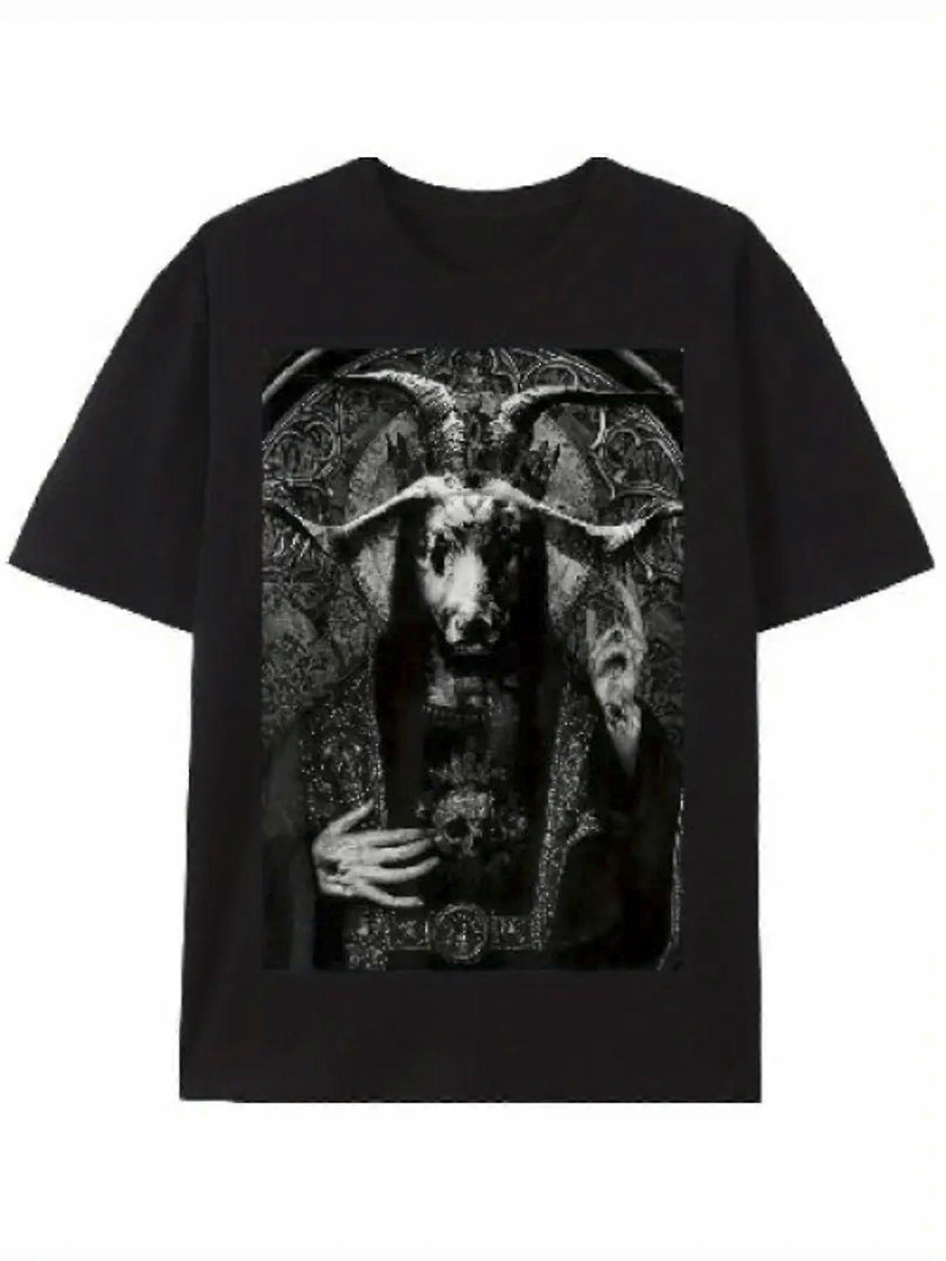 1pc, 100% Pure Cotton, Garbage Gothic Pattern Printed T-Shirt, Seasonal Casual Men'S T-Shirt, Round Neck Pure Cotton Sho-Almwy
