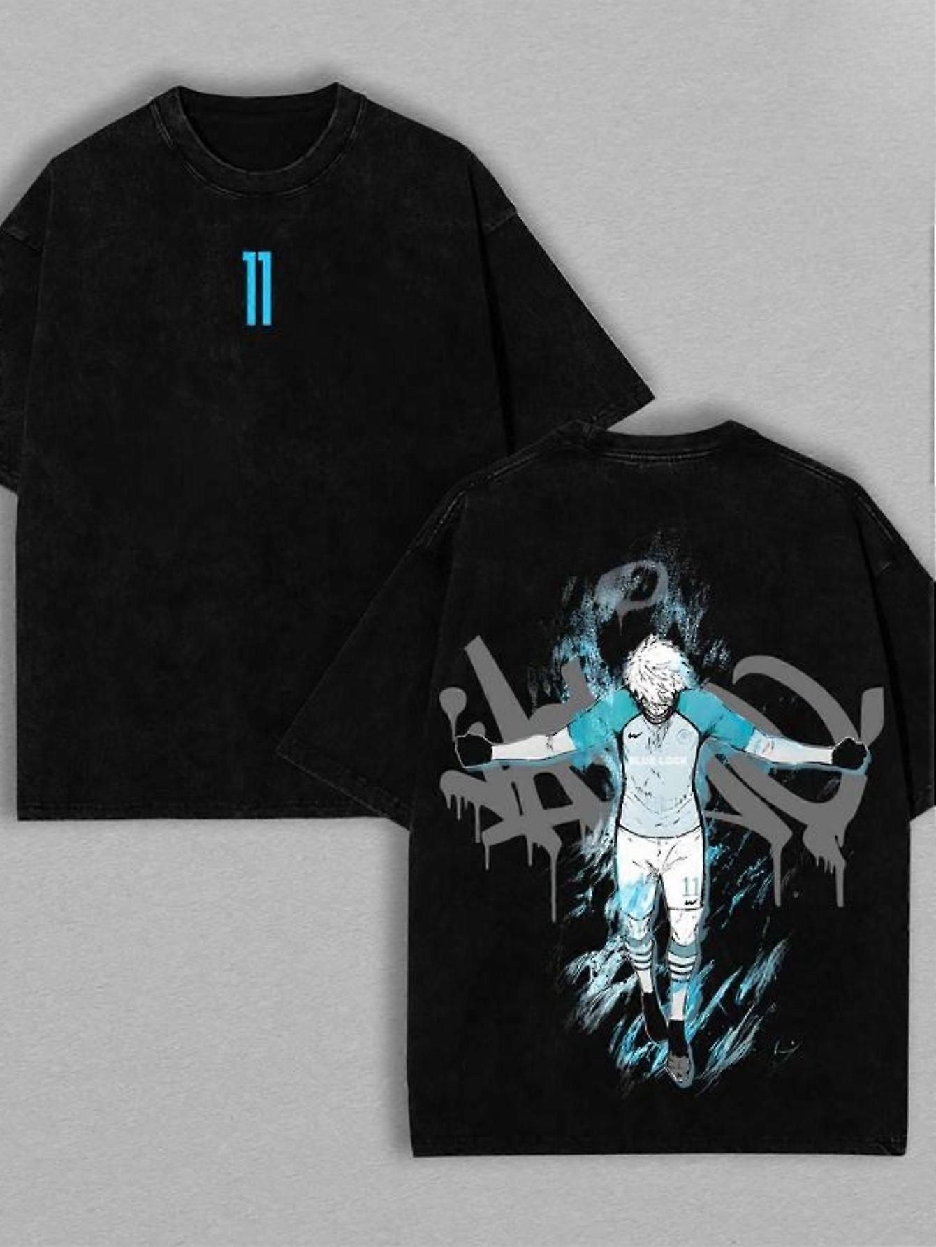 washed vintage t shirts anime Nagi T-Shirt - Seishiro Nagi Blue Lock Anime Double Printed Vintage Washed Tee Unisex Over-Axsgh