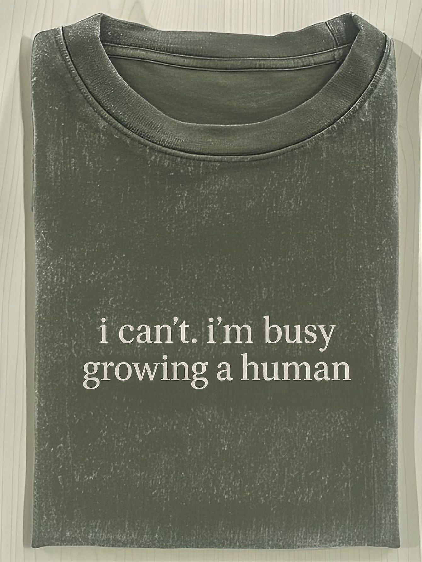Busy Growing a Human - Washed Maternity T-Shirt | Funny Pregnancy Tee for Expecting Moms | Soft and Comfortable | Perfec-Axsgh