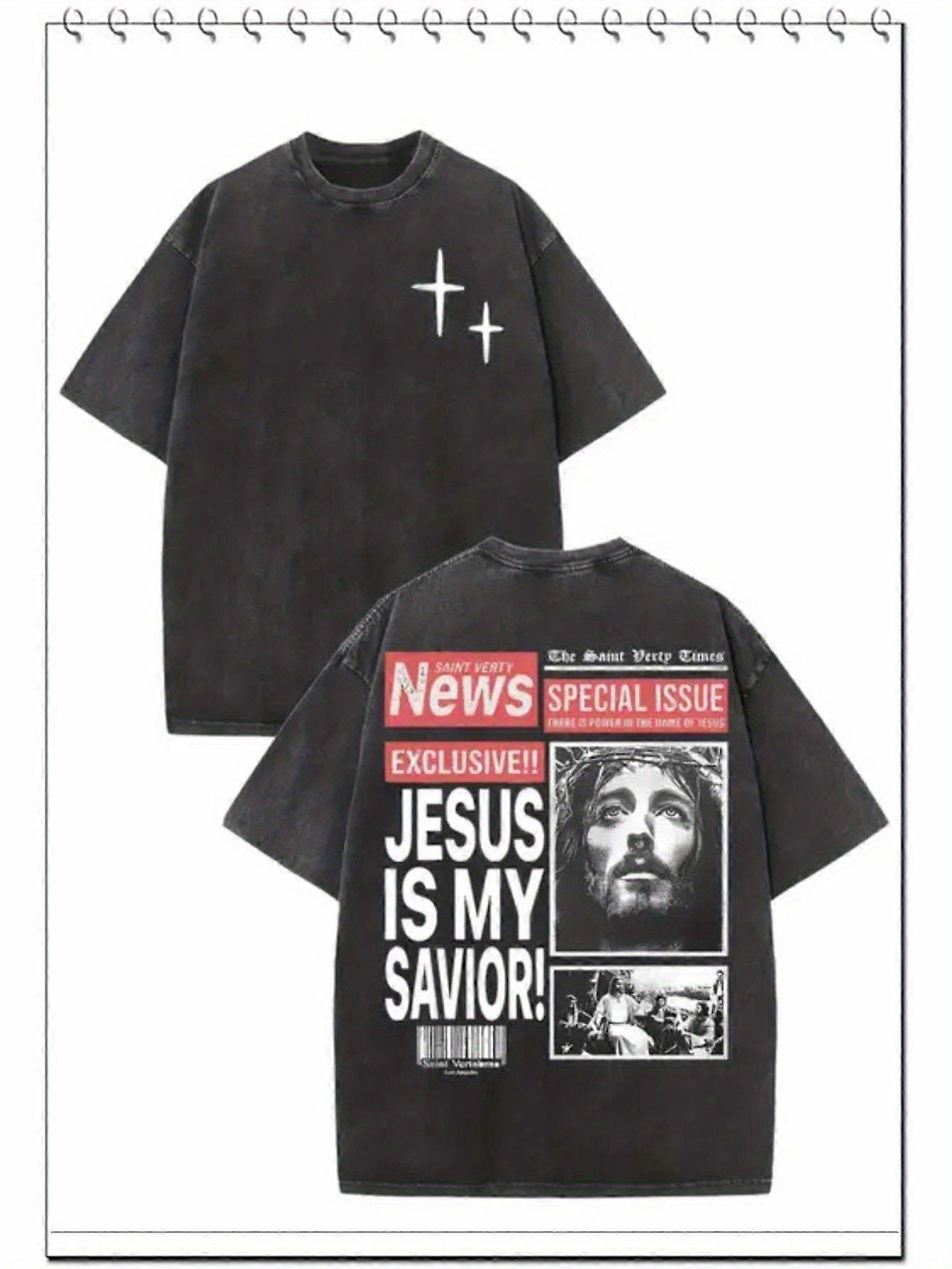 Double-sided Chic Black Round-neck Cotton Washed T-shirt, Featuring Dual-sided Unique & Fun Prints, Essential for Daily -Axsgh