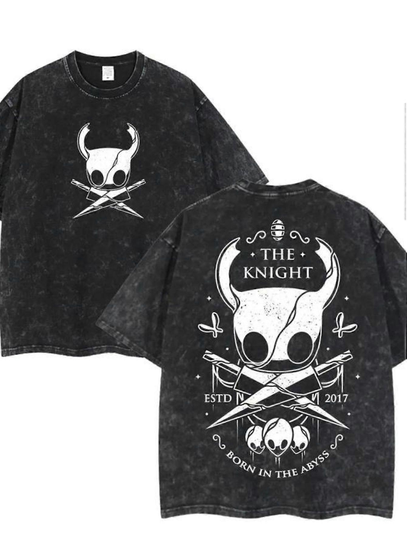 Men'S Heavyweight Vintage Washed T-Shirt - Double-Sided Anime & Gaming Graphic Print, Gothic Skull & Knight Design, Casu-Aqjnf
