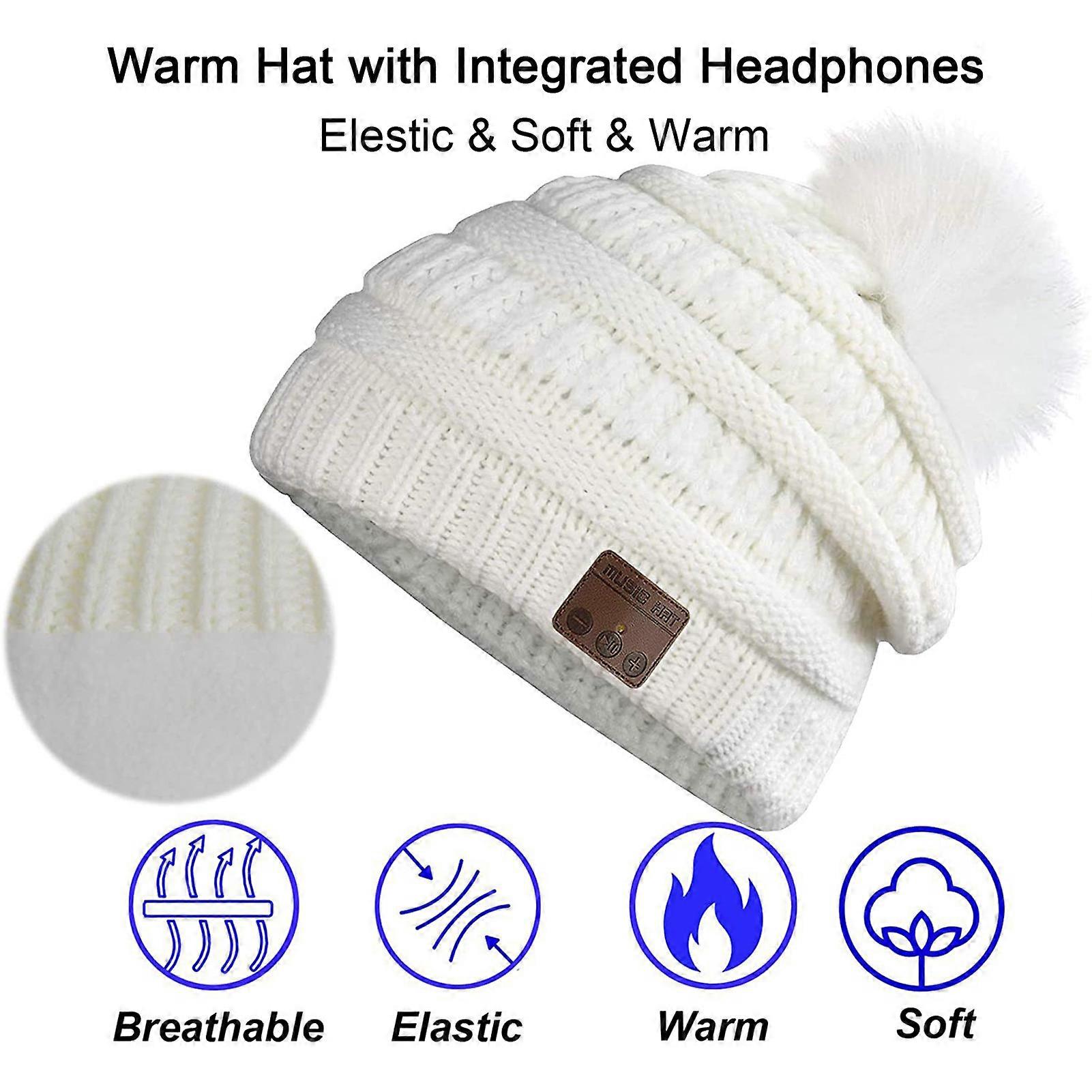 SUSUchens Headphone Hat Wireless Music HiFi Sound Low Latency with Automatic Pairing Thickened Warm Bluetooth-compatible 5.0 Headset Hat White