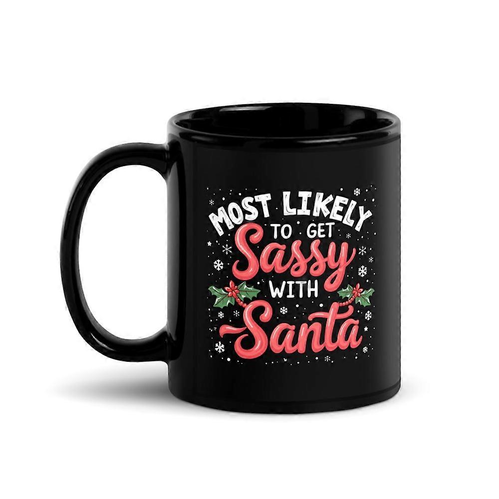 Family Matching Christmas Black Glossy Mug, Most Likely To Get Sassy With Santa, Xmas Present (11 oz)