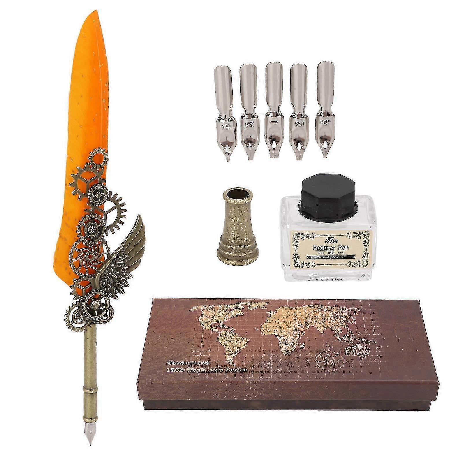 Quill Pen and Ink Set - Smooth Writing, Vintage Style, with Natural Feather Nib and Wear-Resistant Orange Feather 25-26s Pen Set