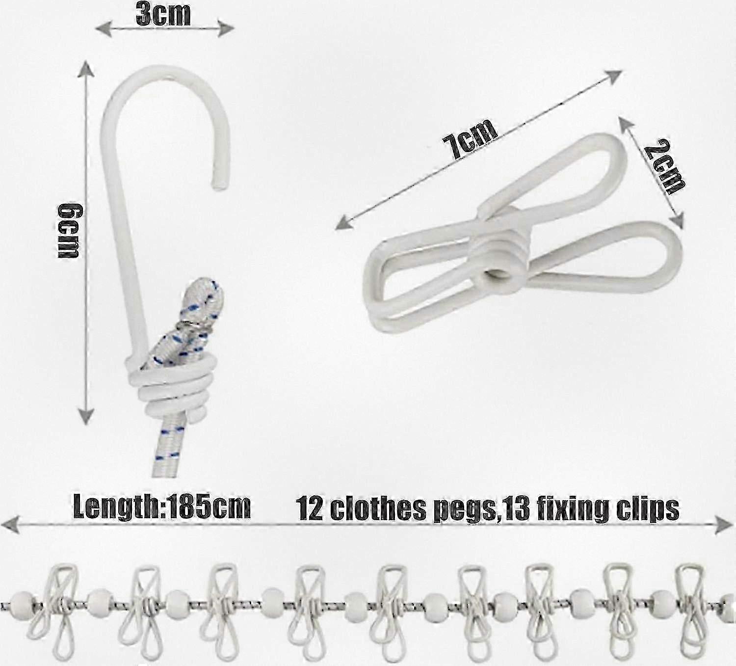 Retractable Travel Clothesline with 12 Coated Hooks - Portable Drying Rack for Camping Use