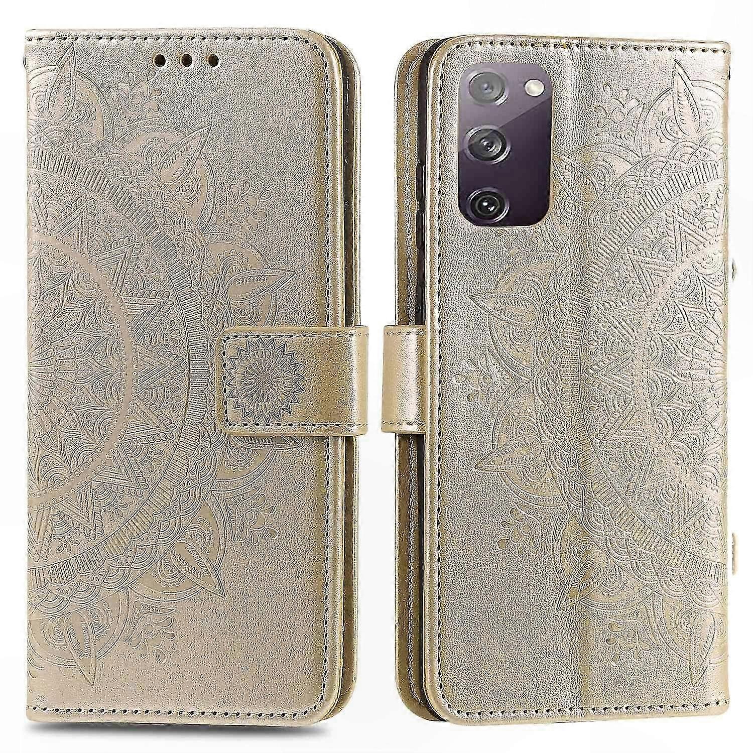 Imprint Flower Leather Cover for Galaxy S20 FE 4G/5G/S20 Lite/S20 FE 2022 - Gold • Imprinted with flower design • Convenient ID/credit card slots and cash pocket • Dual-sided magnetic strap for secure closure • Foldable stand for hands-free viewing • Handy strap for easy carrying • Protects device from scratches and impact Made of high-quality PU leather and soft TPU material, providing 360-degree protection for your smartphone. The distinctive sunflower imprint adds a unique and stylish touch. Features multiple card slots and a cash pocket for storing IC/credit cards and cash. The foldable stand supports your phone at a comfortable viewing angle. Includes a convenient strap for portable carrying. Compatible with: • Galaxy S20 Lite • Galaxy S20 FE • Galaxy S20 FE 5G • Galaxy S20 FE 2022 Package included: • 1 x Imprint Flower Leather Wallet Case • 1 x Strap • Other items not included