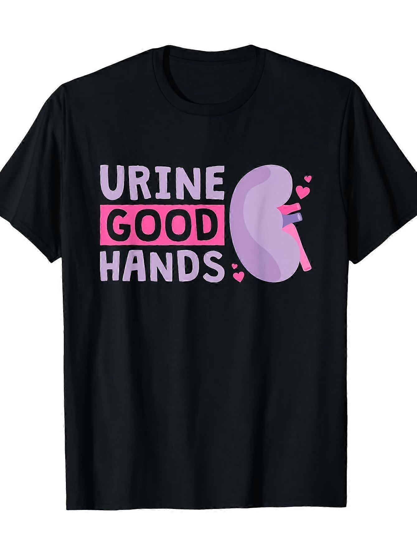 Urine Good Hands Dialysis Technician Nurse T-Shirt - 100% Cotton 180gsm Casual Short Sleeve Tee with Kidney & Heart Grap-Azxcv