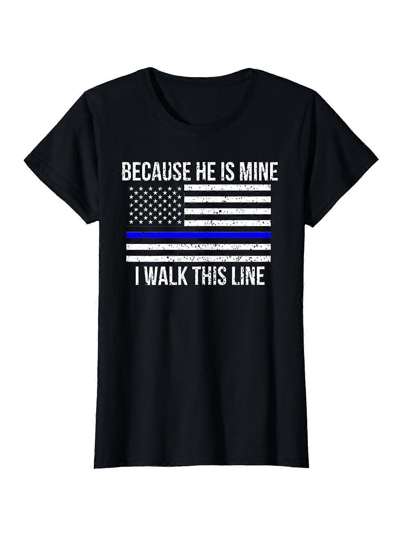 American Flag Police Officer Wife Gift Shirt Girlfriend T-Shirt 100% Cotton Round Neck Short Sleeve T-shirt Halloween Th-ZXCVB
