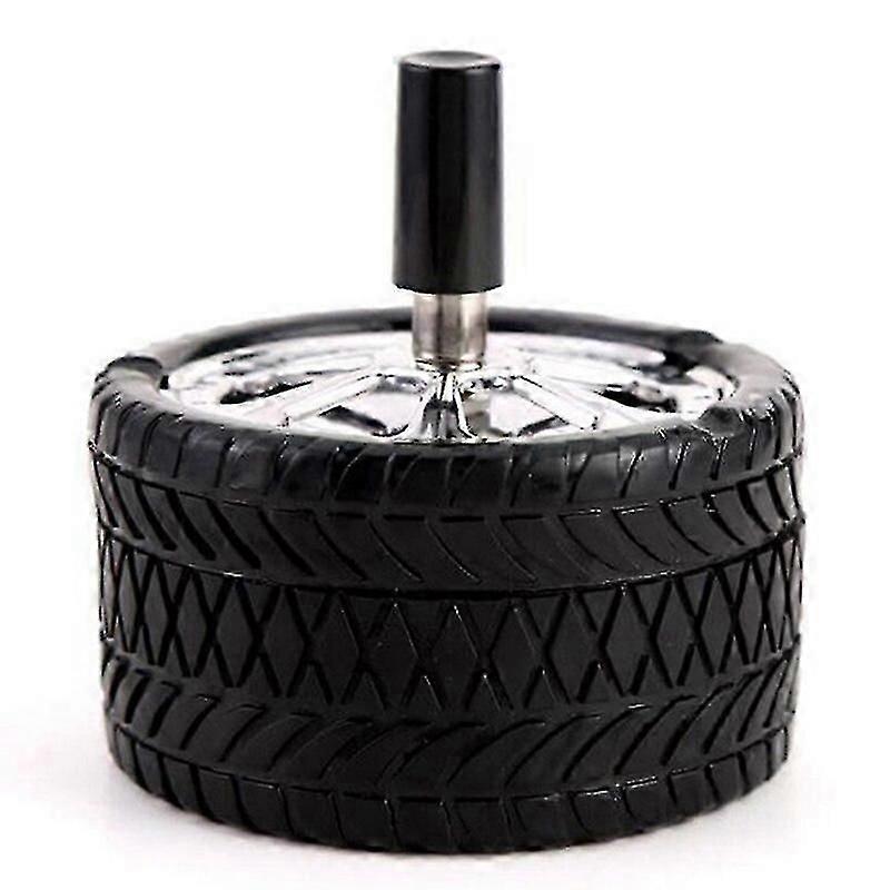 Exquisite Hot Clean Press Tire Type Windproof Rotation Tire Ashtray Press Rotary Stainless Steel Seal Ashtray Black Car Tire Ashtray Press