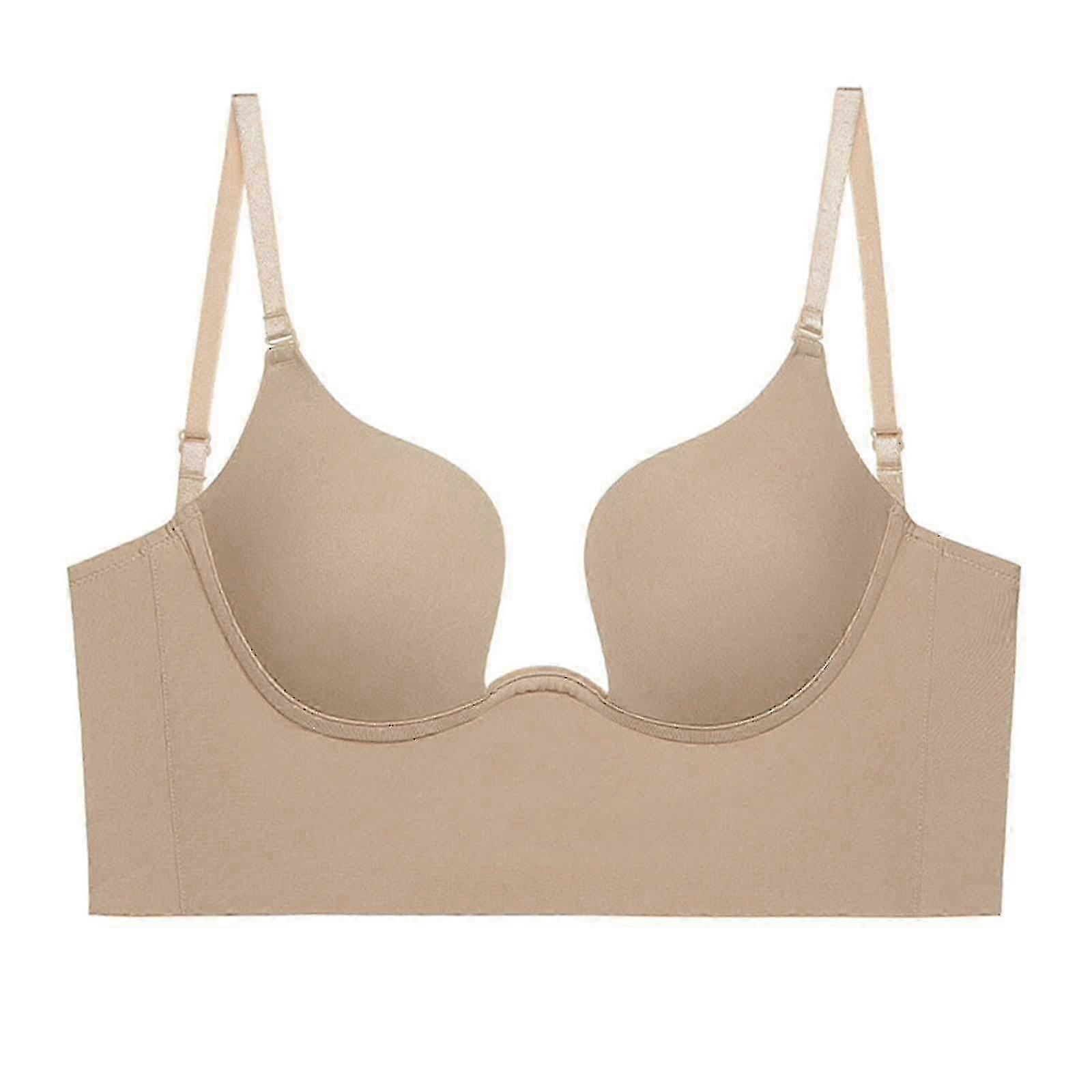 Exquisite Women Low Cut Deep U Plunge Bra Padded Push Up V Shape Backless Longline Bras With Convertible Clear Straps