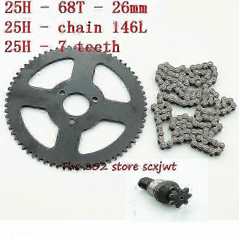 Good Quality 26mm 68 Tooth 25h 2 Stroke + Chain 146 Links Sprocket For 47cc 49cc Chinese Pocket Bike Quad 4 Wheeler Mini Atv