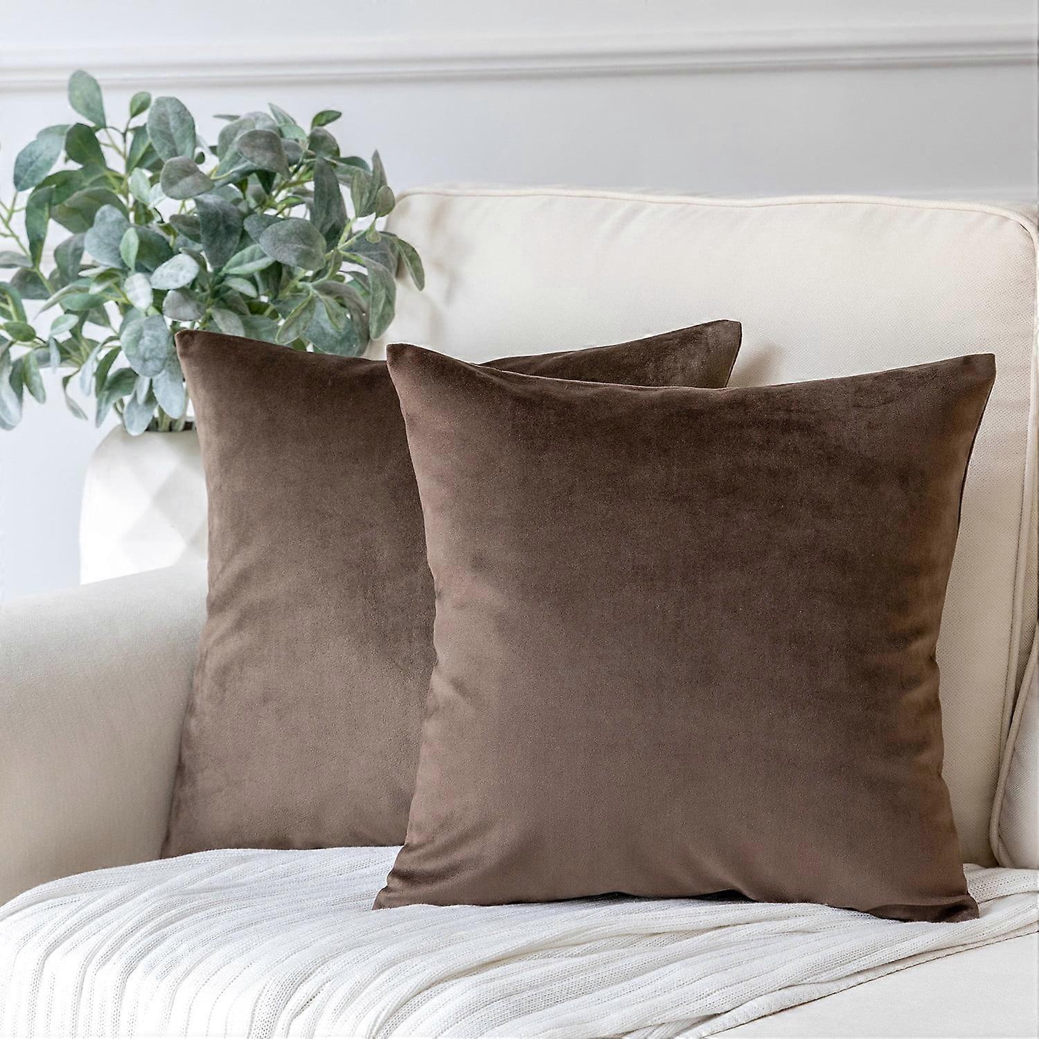 Phantoscope Soft Solid Square Velvet Decorative Throw Pillow Cover for Couch and Sofa, 20" x 20", Dark Coffee, 2 Pack