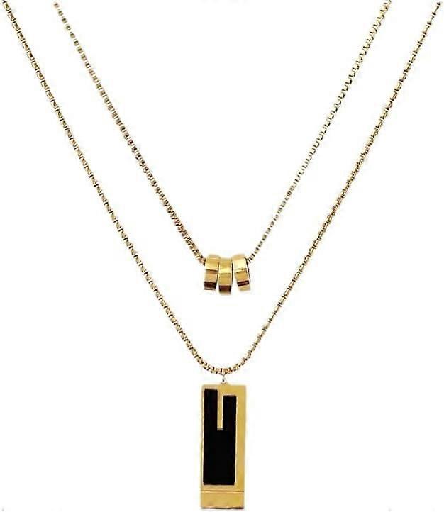 Fashionable Titanium Steel Double-Layer Square Long Sweater Chain, Compatible with Luxury Brands - Must-Have for Women's Autumn Winter Style