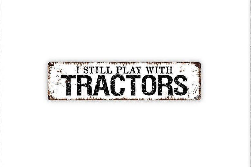 I Still Play With Tractors Sign Funny Farm Ranch Metal Sign Farmhouse Style Decor Rustic Street Sign or Door Name Plate Plaque Size: 4 x 16 Inch