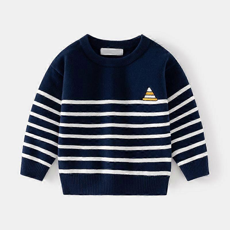 Striped Crew Neck Sweater Kids Cotton Knit Top Baby Layering Shirt Soft Comfortable Breathable