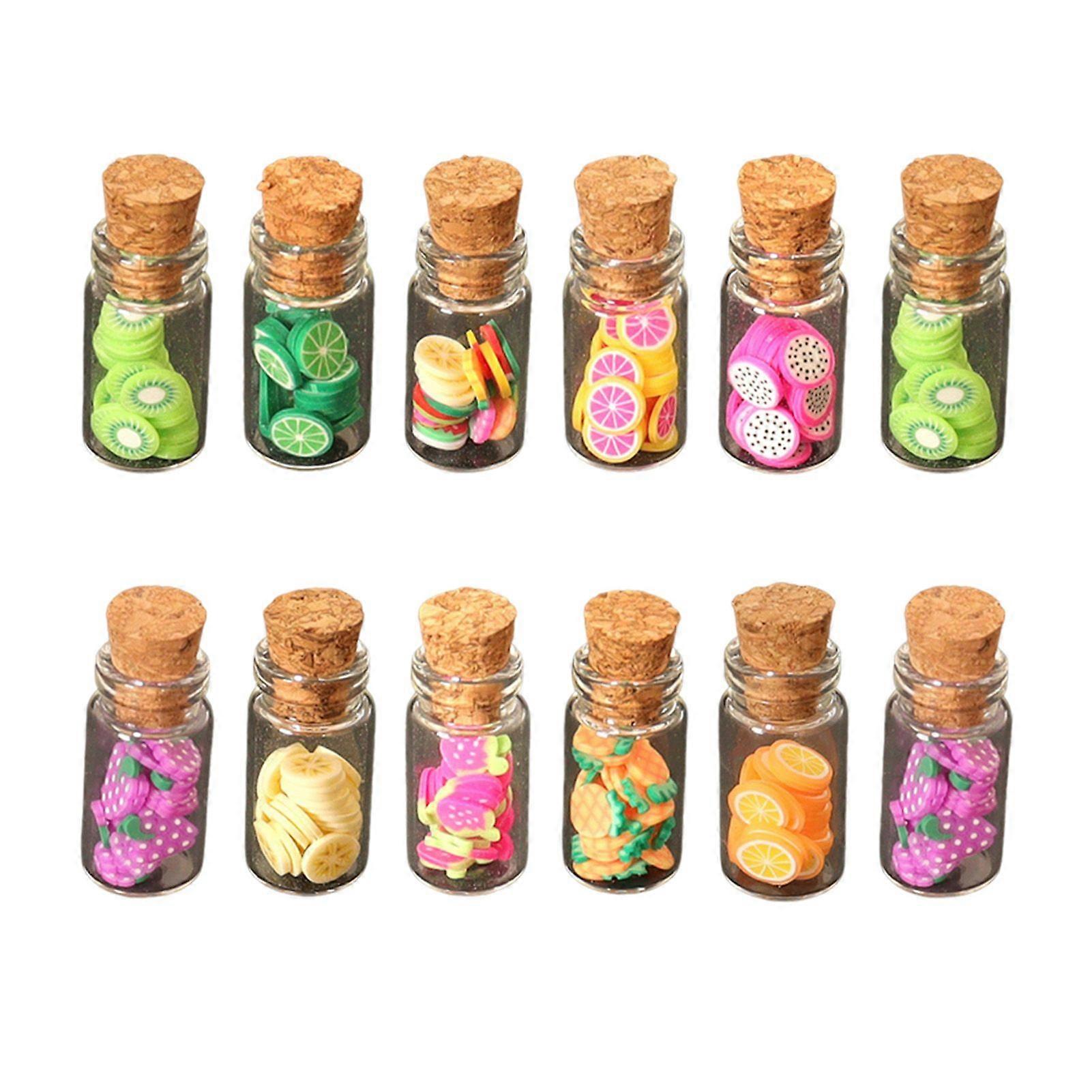 12Pcs Doll Houses Accessories Miniature Fruit Jars 1/12 Scale Realistic Fruits in Glass Jar for Fairy Garden Doll Houses Kitchen Decor And DIY Crafts