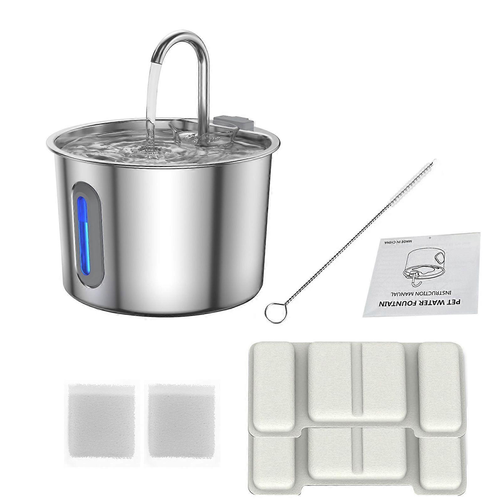 Dog Water Fountain 2.2L Stainless Steel Quiet Pet Fountain with Quadruple Filtration System Purification Fountain with Visual Water Level for Cats Sma