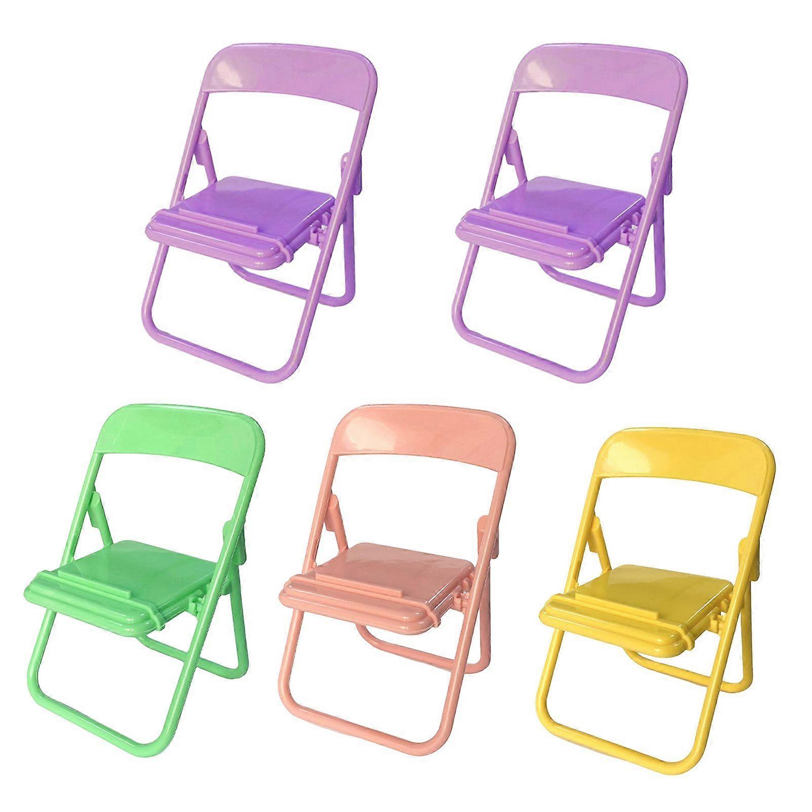 5Pcs Foldable Chair Phone Stand Mini Desktop Holder for Students Cute Plastic Small Back Chair for Smartphones Dormitory Desk Organizer