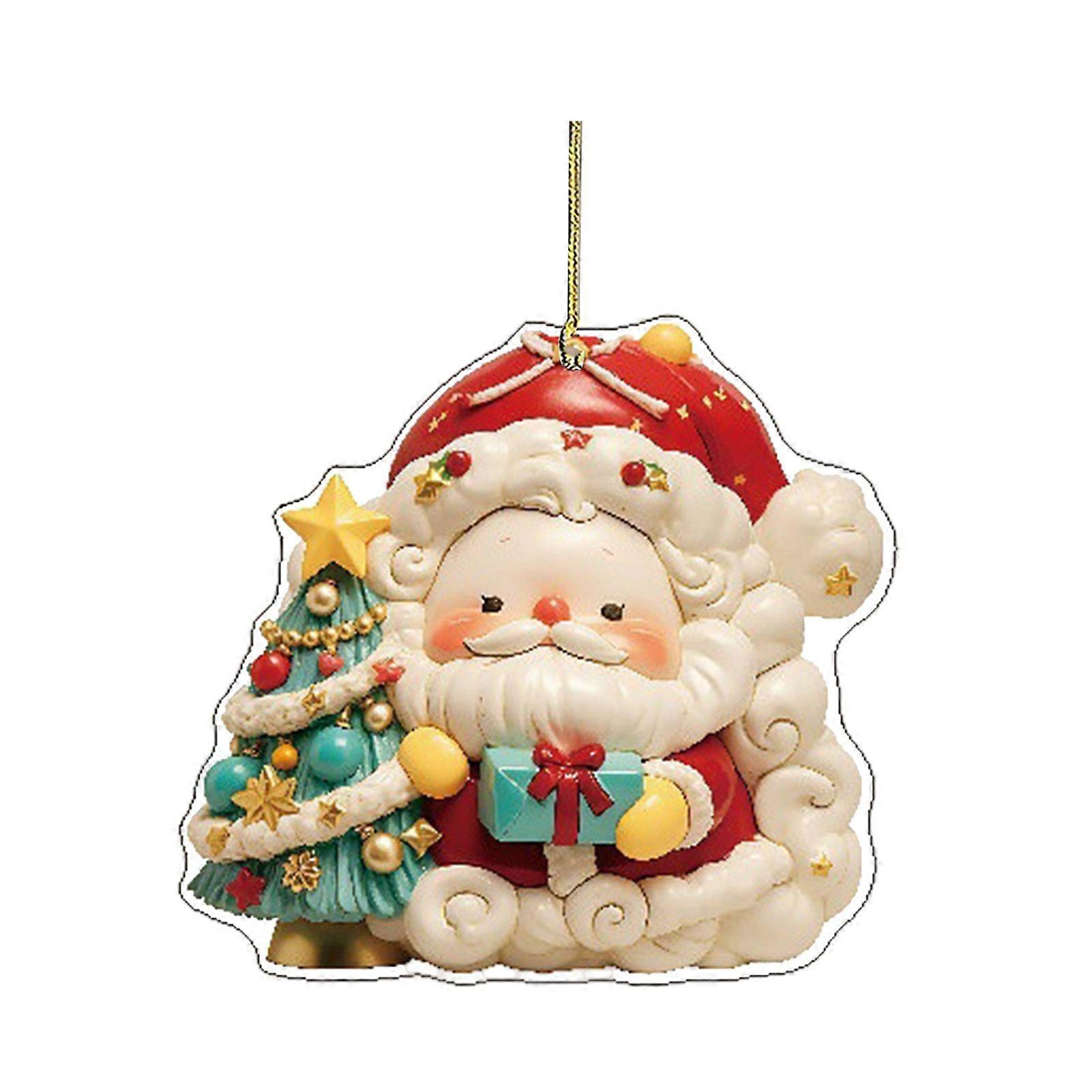 Christmas Car Charm 2D Acrylic Keychain Santa Reindeer Car Mirror Hanging Ornament Festive Decor for Home Tree