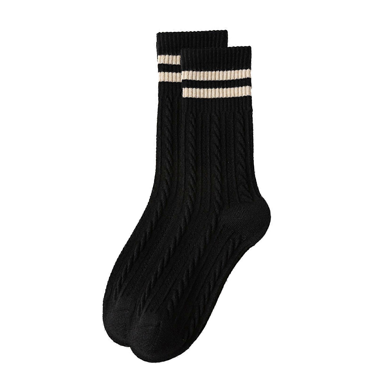 1 Pair Women Socks Ribbed Cuffs Twist Textures Sweat-absorbent Elastic Socks Autumn Winter Mid-tube Thick Warm Socks