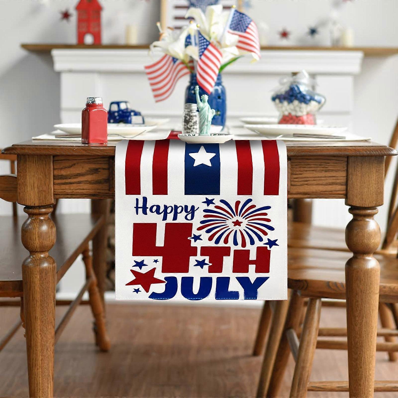 Giyblacko Decorative Table Banner, Patriotic Stripes Flag with Wired Edge, Custom Satin Ribbon for Holiday & Independence Day Decor