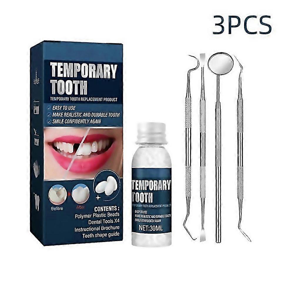 For 3pcs Tooth Filling Repair Kit Temporary Tooth Kits With 4 Dental Tools Moldable False Teeth For