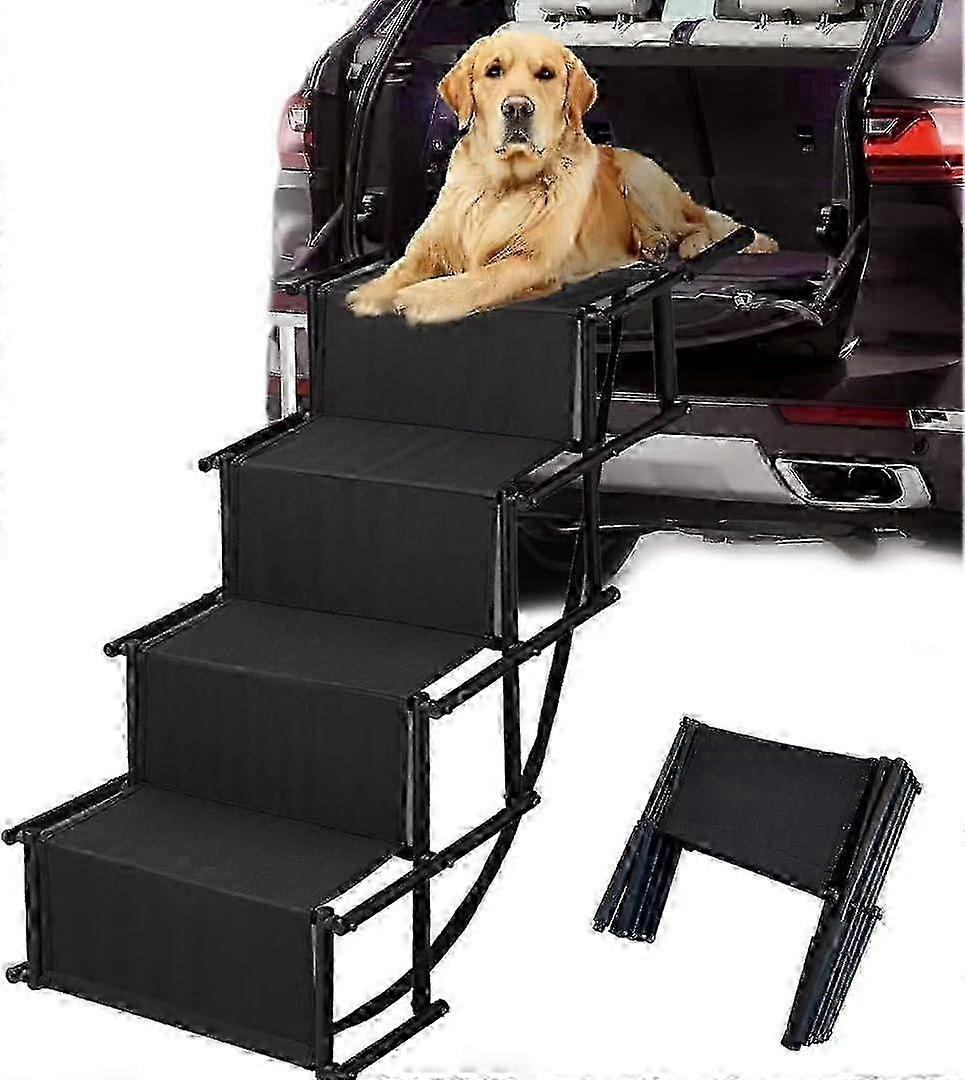 Foldable Dog Ramp Aluminum Frame 4 Steps Dogs Pet Stairs, Black