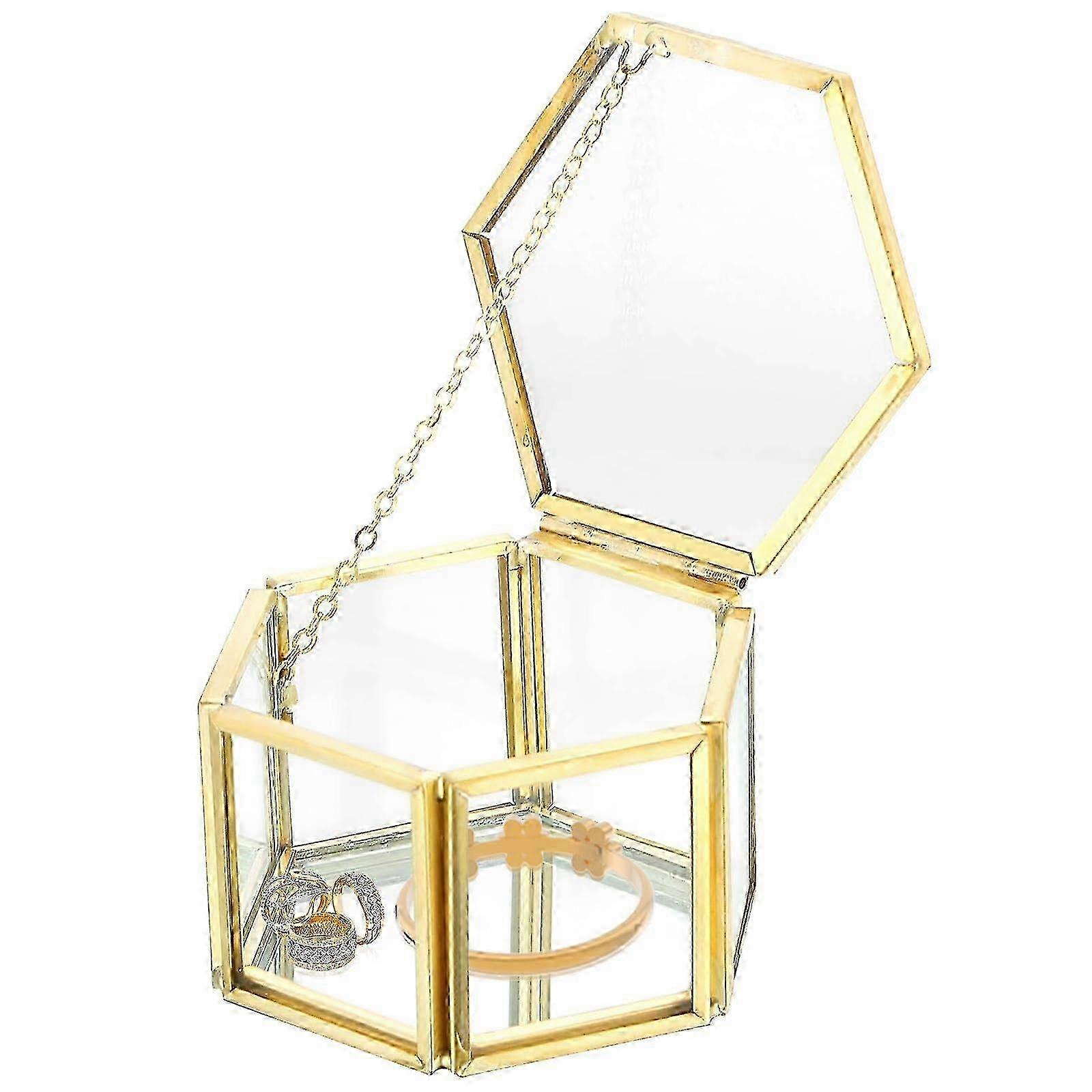 Vintage Gold Geometric Jewelry Box for Home Decorative Storage 3.1 x 4.1 x 1.8 Inch New-Arrival