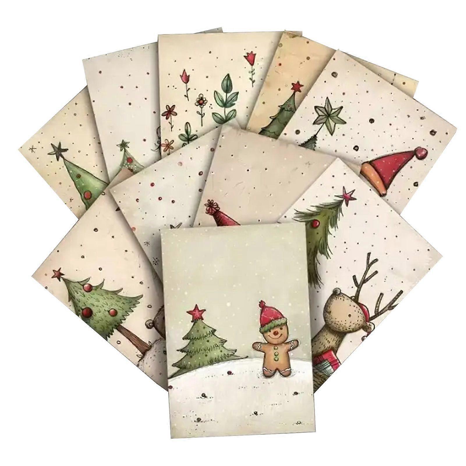 20 Sheets Christmas Postcard Vintage Xmas Tree Cat Gingerbread Man Snowman Reindeer Greeting Card for Winter Party Supplies