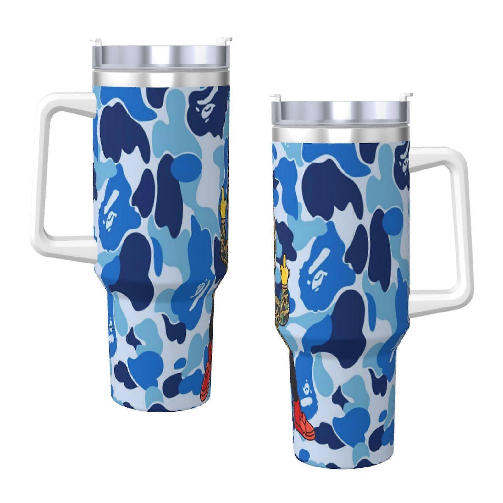 BA_PE 40 Oz Tumbler With Handle And Straw Leakproof Insulated Tumbler With Lid And Straw Made Of Stainless Steel Cup Holder Friendly Base