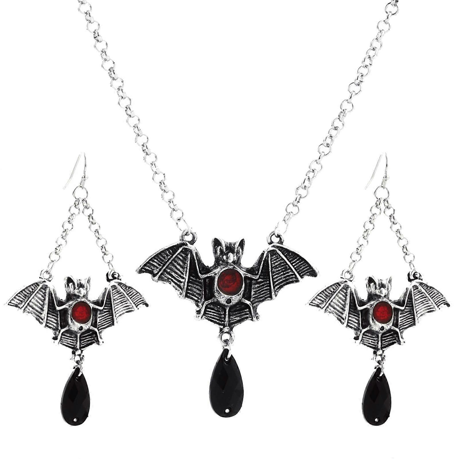 Funny Halloween Pendants Bat Necklace Earrings For Women Black Red Pendant Necklace Earrings Funny Necklace Earrings Set For Women Girls