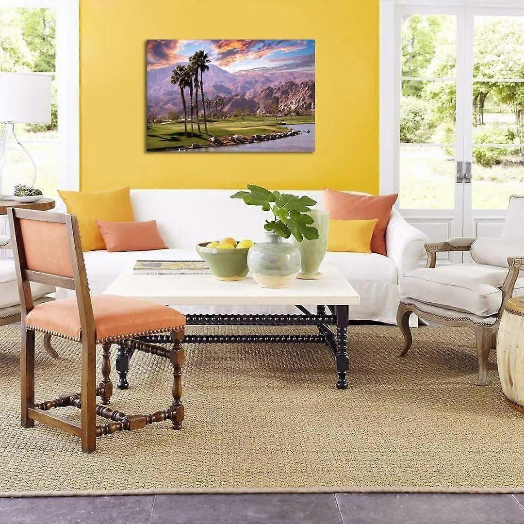 Golf Course at Sunset in Palm Wall Art, USA California Canvas Print for Home, Living Room, Bedroom, Bathroom, unframed, Ready to Hang (28''H x 44''W)