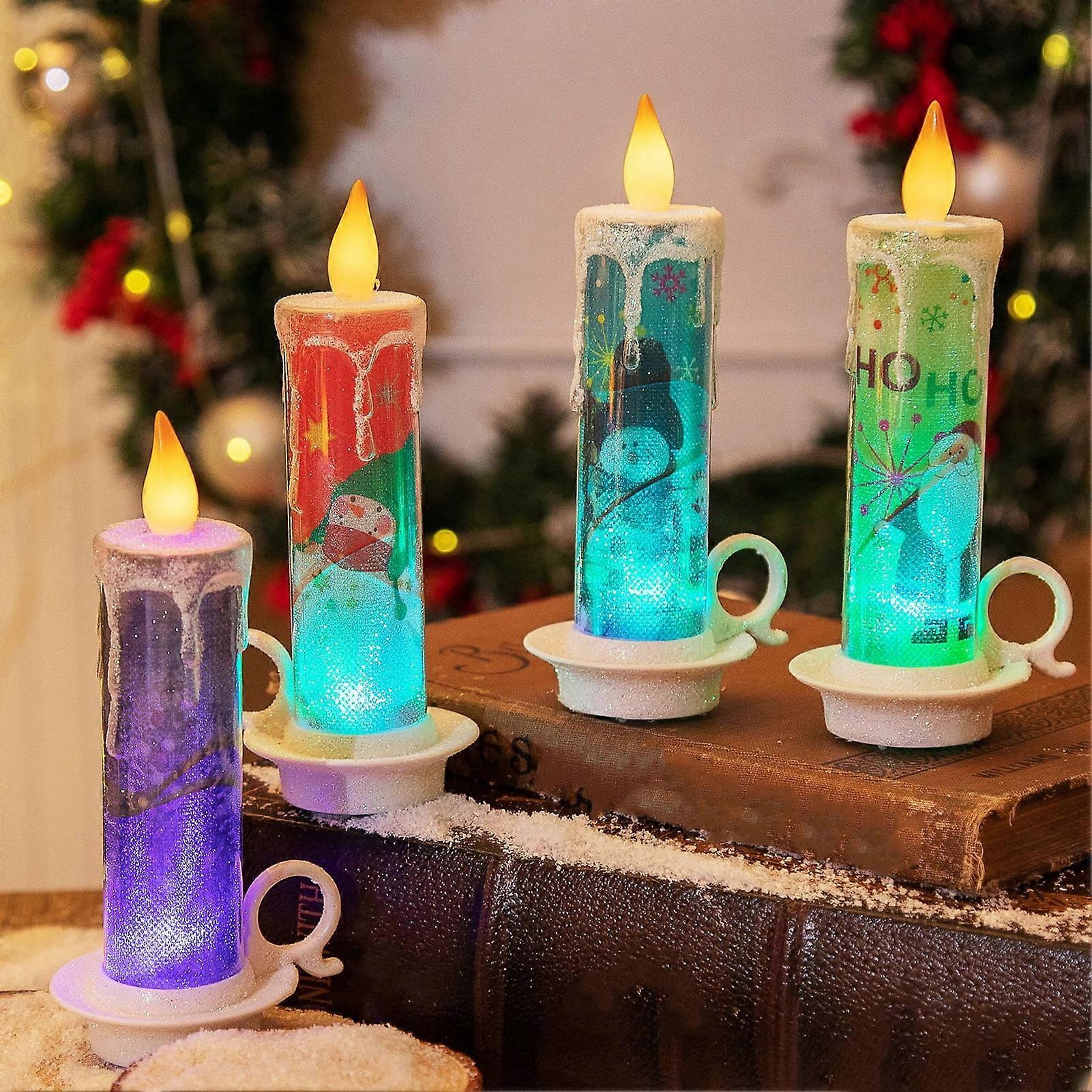 SUSUchens Christmas Small Candles LED Electronic Candle Lights with Cute Christmas Patterns Desktop Decorations Style B