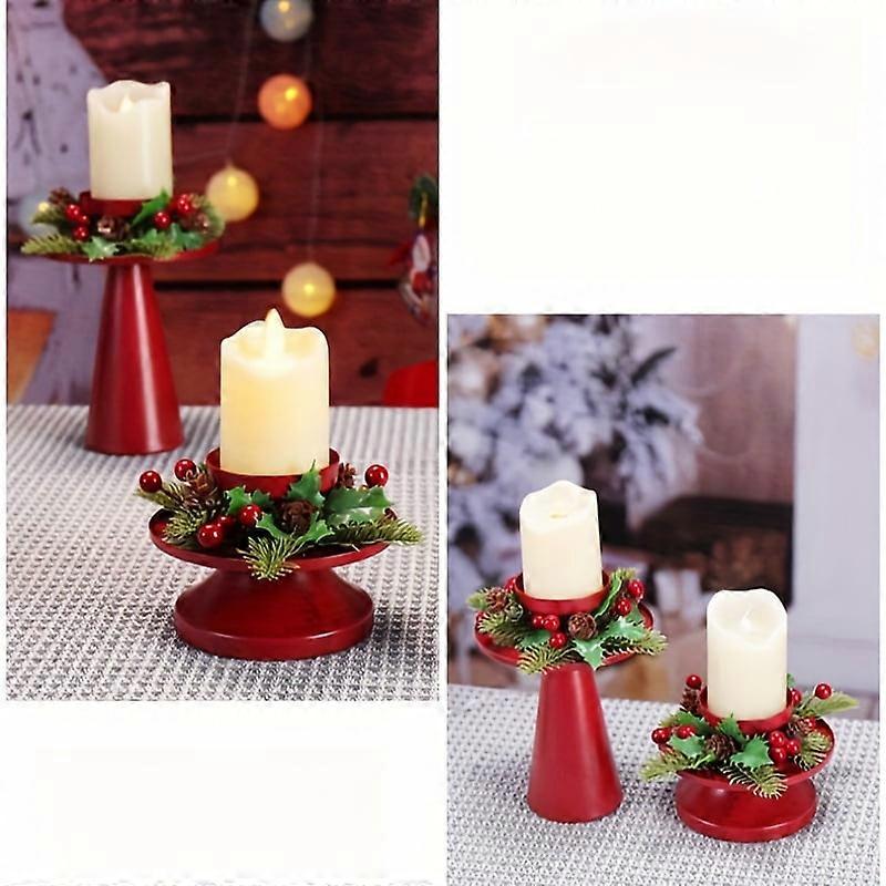 Description: Material: *Candle holder - iron *Handmade wreath - PE material Dimensions: *Highest 16.3 x 11.7 cm *Lowest 8.1 x 11.7 cm *Candle size within 5.8 cm Package includes: 2*Vintage Ornaments Christmas Wreath Candle Holders Notice: 1:Please accept slight color difference because of light and screen factors. 2:Please accept 1-3cm errors because of the manual measurement. 【Classic Design】2 pieces of high and low candle holders, good decoration for Christmas. The candle holders are mainly composed of artificial pine cones and red berries. The Christmas color design brings an elegant and festive atmosphere to your home. 【Reusable】The candle holder is made of high-quality iron, and the baking process is more rust-proof and durable. The base is stable and not easy to fall off, and beavers are added to prevent scratches and slips. The handmade wreath is made of PE material, and the overall structure is more textured. 【Size】The high one is 16.3 x 11.7 cm, the low one is 8.1 ​​x 11.7 cm, and the candle size is within 5.8cm. There are pillar candles, ribbon candles, electronic candles and other Christmas decoration tables. 【Perfect Decoration】The Christmas wreath candle holder is suitable for beautiful decorations such as Thanksgiving, Christmas, wedding centers, dining tables, living rooms, bedrooms, kitchens, offices, cafes, restaurants, wardrobes, walls, windows, etc. 【Perfect Gift】This is the best gift for family, friends, neighbors, etc. during the holidays. Creative layout brings happiness to people and leaves a beautiful and warm environment.
