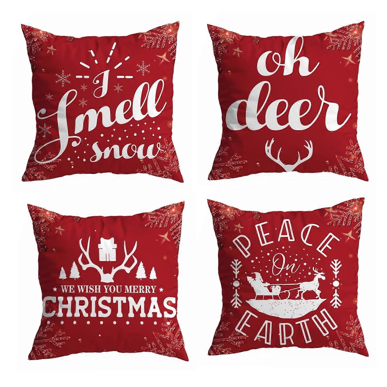 4Pcs 18x18" Christmas Pillow Covers, Red Letter Print - Clearance! Giyblacko Decorative Pillowcase Set for Sofa, compatible with Christmas Decor