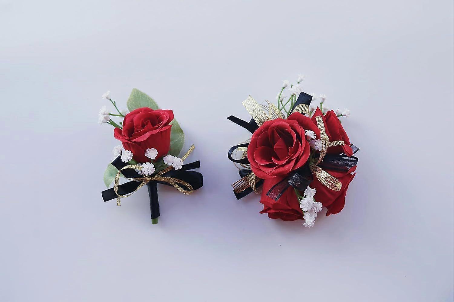 SeraphinaT Rose Wrist Corsage Boutonniere Set, Artificial Rose Wrist Corsage and