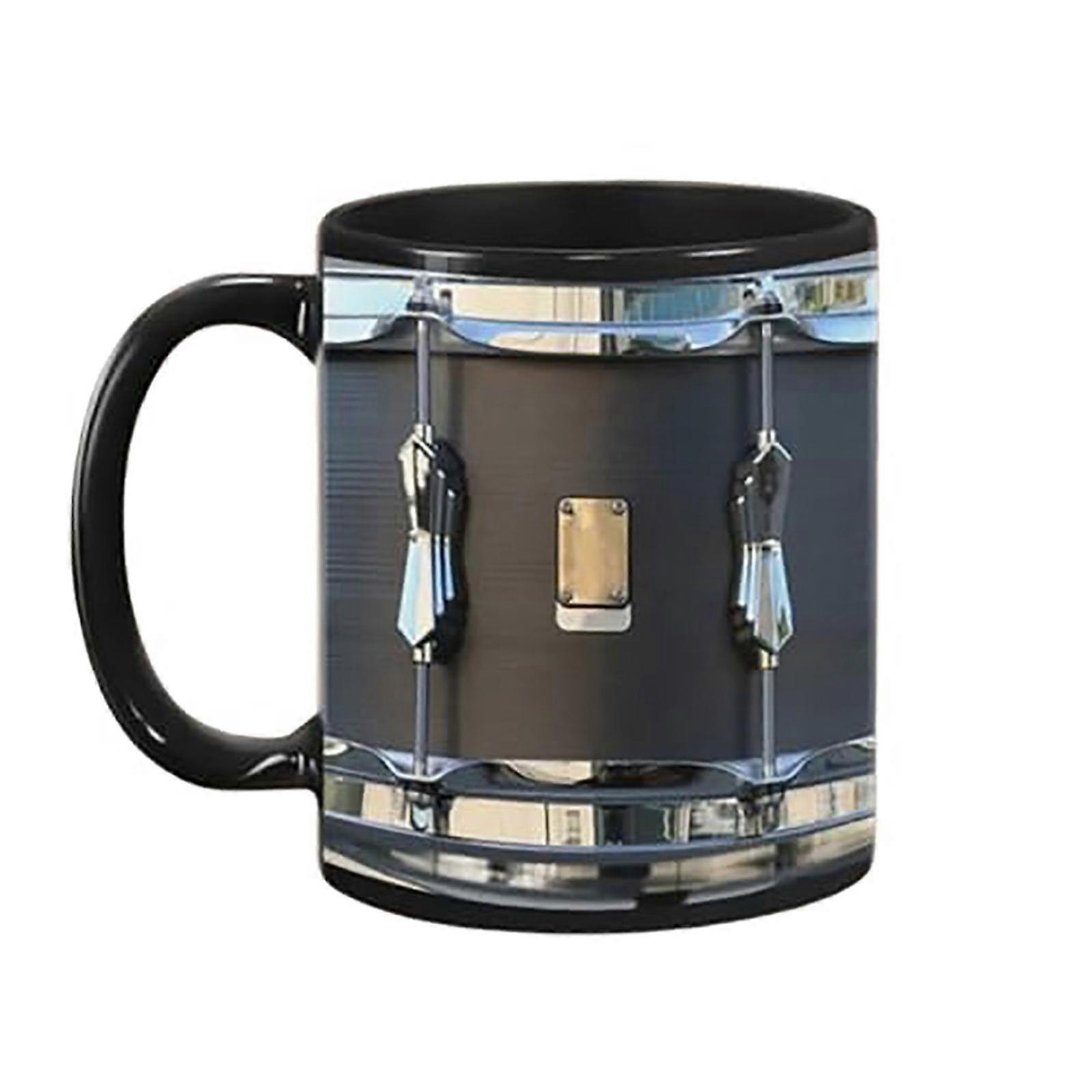 Black Vintage Drum Mug Funny Drumming Creativity Drumming Coffee Cup 11Oz Play Drum Mug Ceramic Mug Music Note Spoonsfor Drummer Or Drum Lover