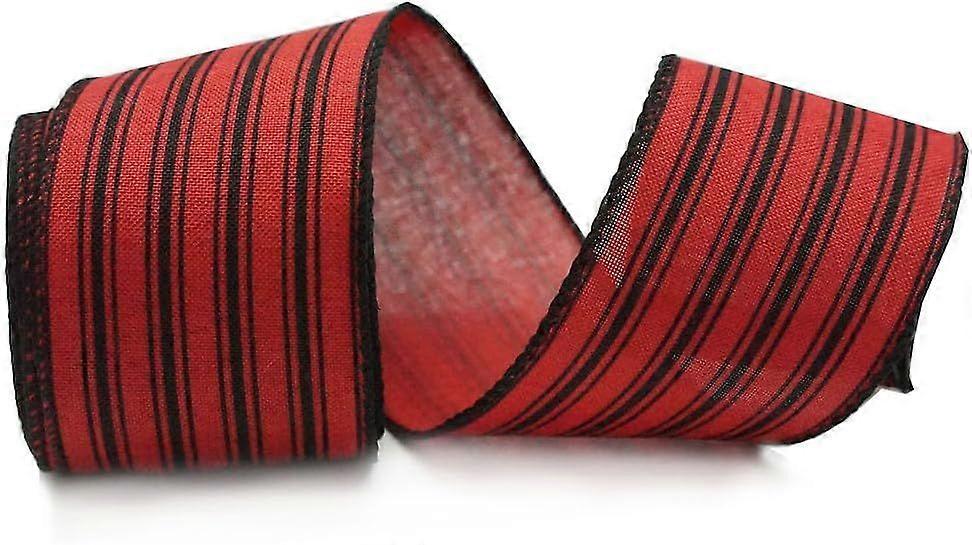Classic Red and Black Striped Wired Ribbon, Burlap Wired Edge Ribbon for Wreath,