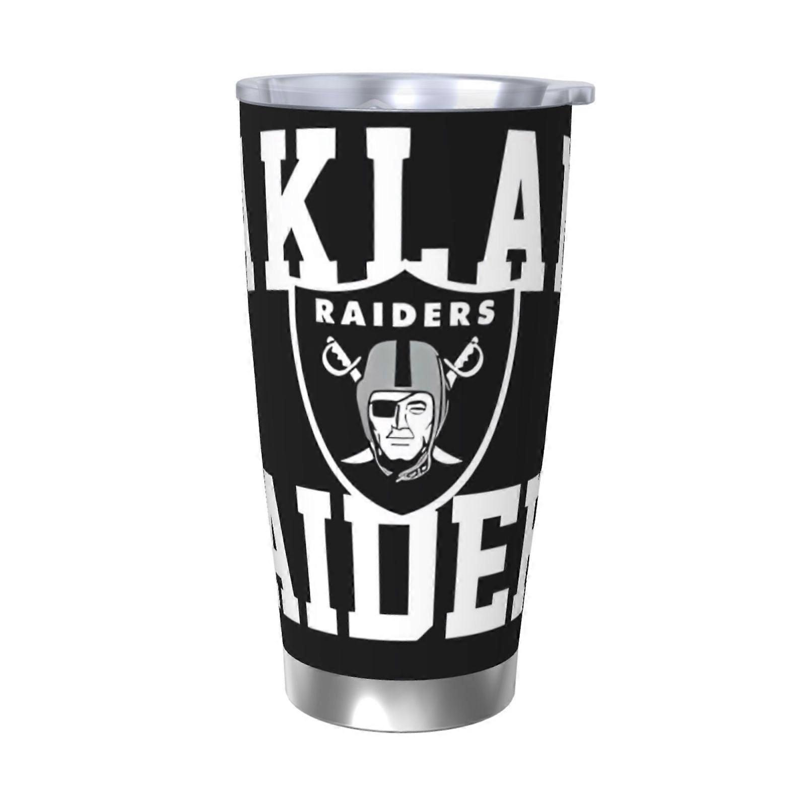 Raiders Football Team Theme 20oz Stainless Steel Thermos Cup with Lid & Straw - Compatible with Car Cup Holders, Hot & Cold Drinks, Coffee, Sports,