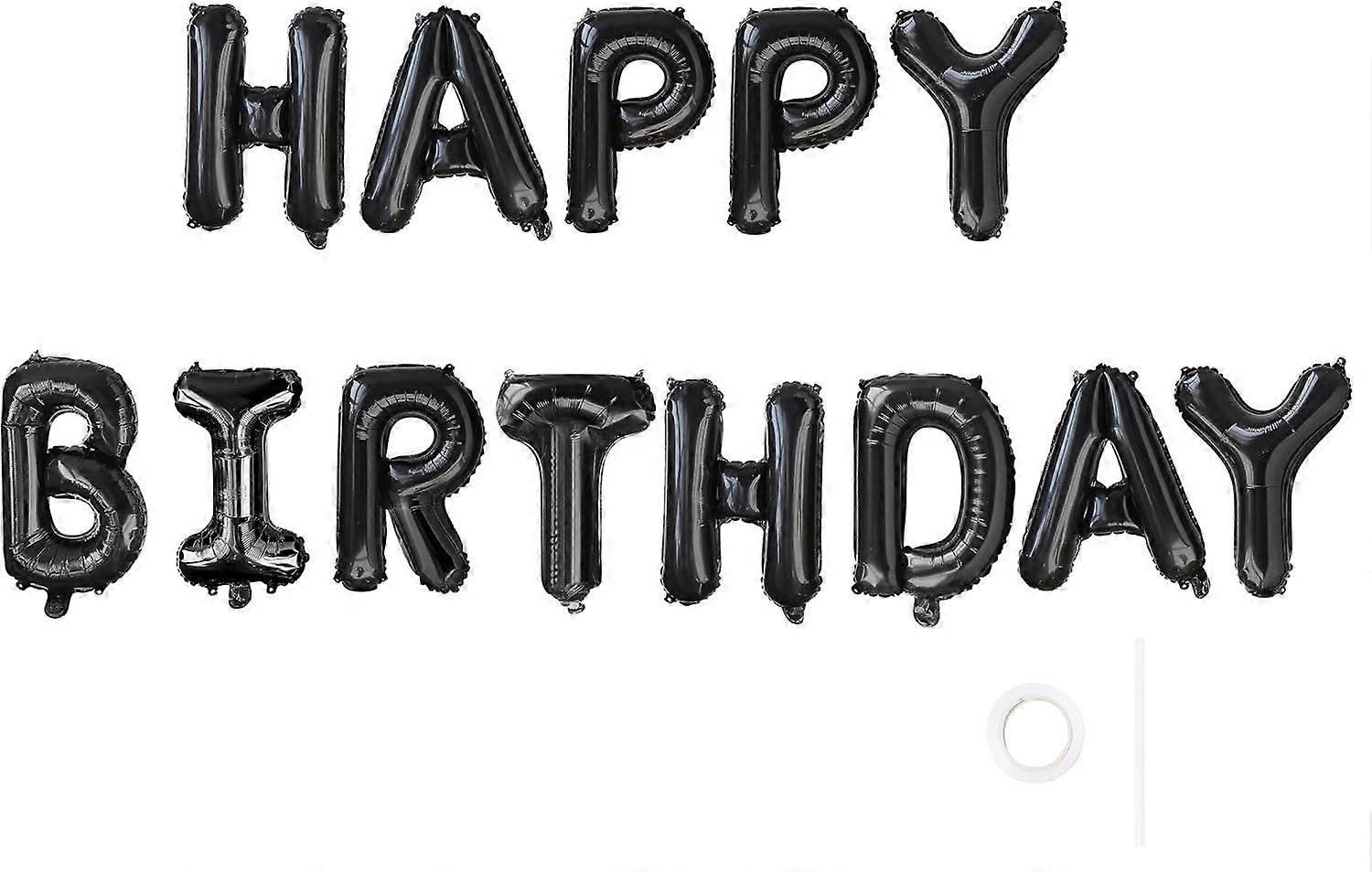 SeraphinaT Black Happy Birthday Balloons Banner, 16 Inch Reusable 3D Letter