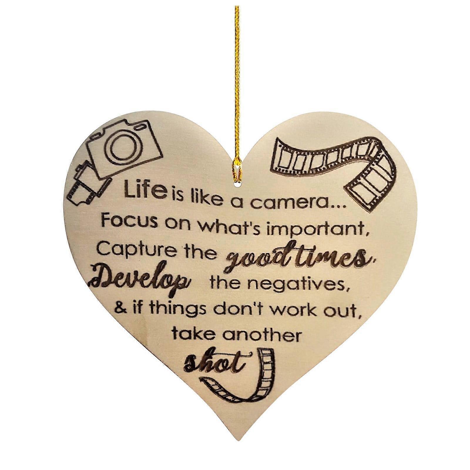 XIUH Home Decoration Hangs Wooden Heart Shaped Pendant with Wooden Craftsmanship and Lifestyle Quotes (C)
